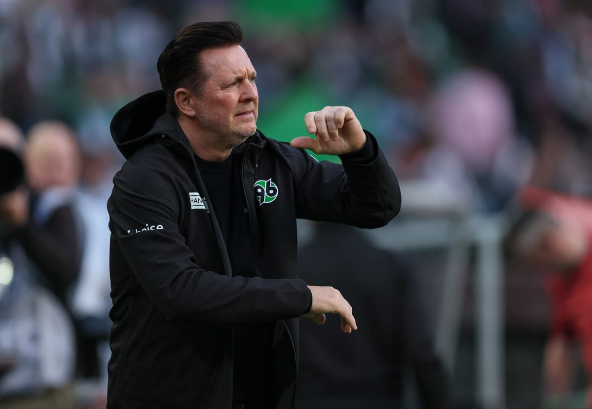 HANOVER, GERMANY – APRIL 18: head coach Christian Titz of Hannover looks on during the 2. Bundesliga match between Hannover 96 and SC Paderborn 07 at HDI-Arena on April 18, 2026 in Hanover, Germany. (Photo by Selim Sudheimer/Getty Images)