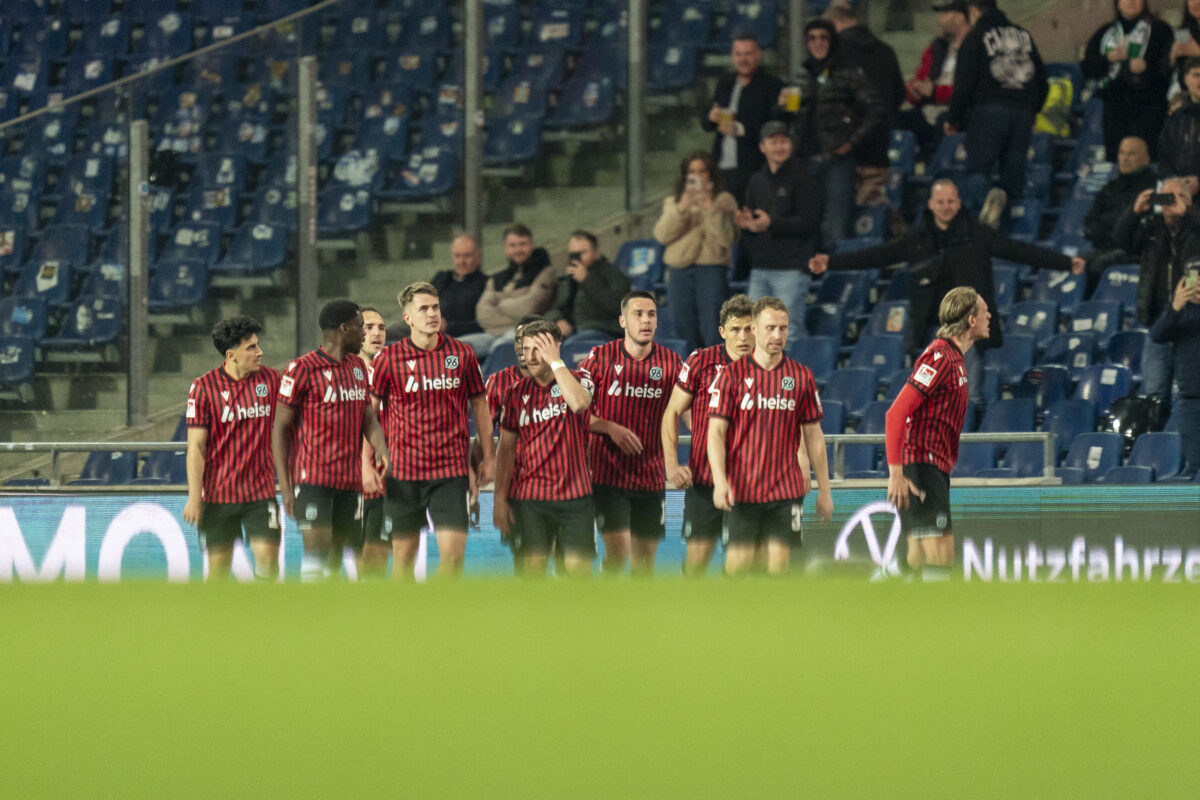 HANOVER, GERMANY – MARCH 20: Maik Nawrocki of Hannover 96 celebrates scoring his teams first goal during the 2. Bundesliga match between Hannover 96 and Eintracht Braunschweig at HDI-Arena on March 20, 2026 in Hanover, Germany. (Photo by Fabio Deinert/Getty Images)